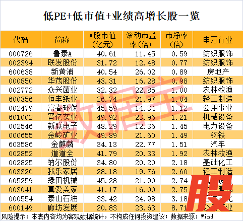 低PE+低PB的低市值高增长股稀缺低PE+低PB的低市值高增长股稀缺